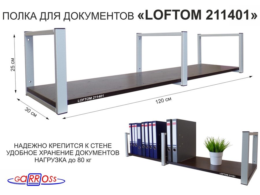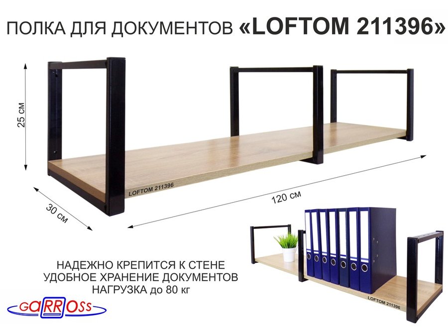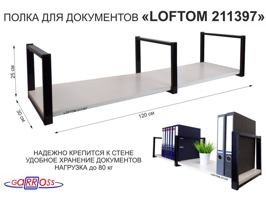 . Полки для папок-регистраторов и документов "LOFTOM" высота 25 см, полки 120х30см, 1 уровень