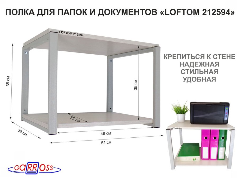 . Полки для папок-регистраторов и документов (подставки) "LOFTOM" высота 54 см, 54х35см, 1 уровень