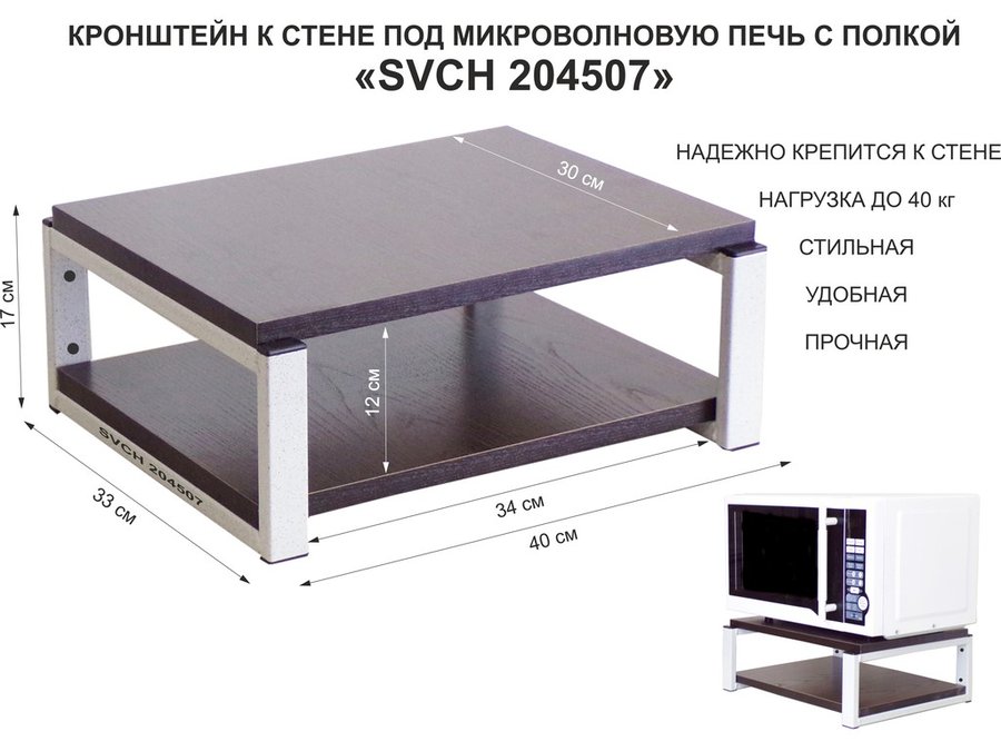 В корзину Купить в 1 клик Кронштейн для микроволновки, 17см серый "SVCH 204507" под микроволновую печь, полка 30х40см, венге
