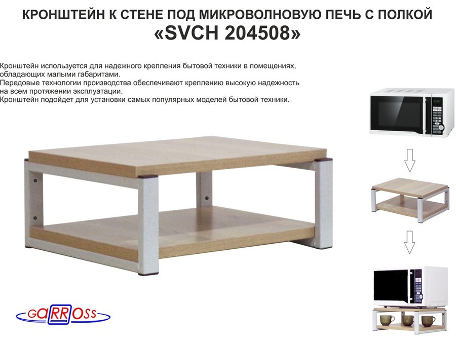 В корзину Купить в 1 клик Кронштейн для микроволновки, 17см серый "SVCH 204508" под микроволновую печь, полка 30х40см, дуб