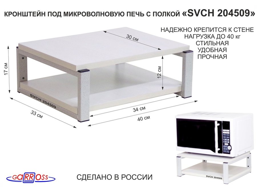 Полки для микроволновок "SVCH" кронштейны для СВЧ печей, высота 17см, 40х30см, 2 уровня