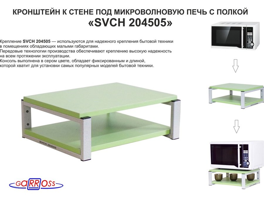 В корзину Купить в 1 клик Кронштейн для микроволновки, 17см серый "SVCH 204505" под микроволновую печь, полка 30х40, салатовый