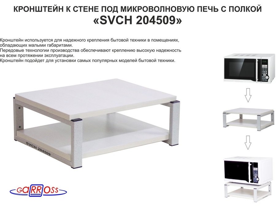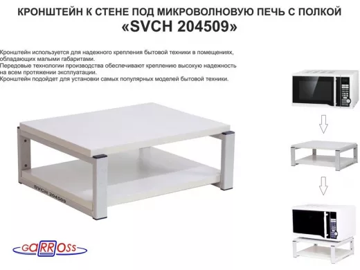 Кронштейн для микроволновки, 17см серый "SVCH 204509" под микроволновую печь,полка, 30х40см,сосна