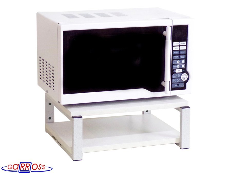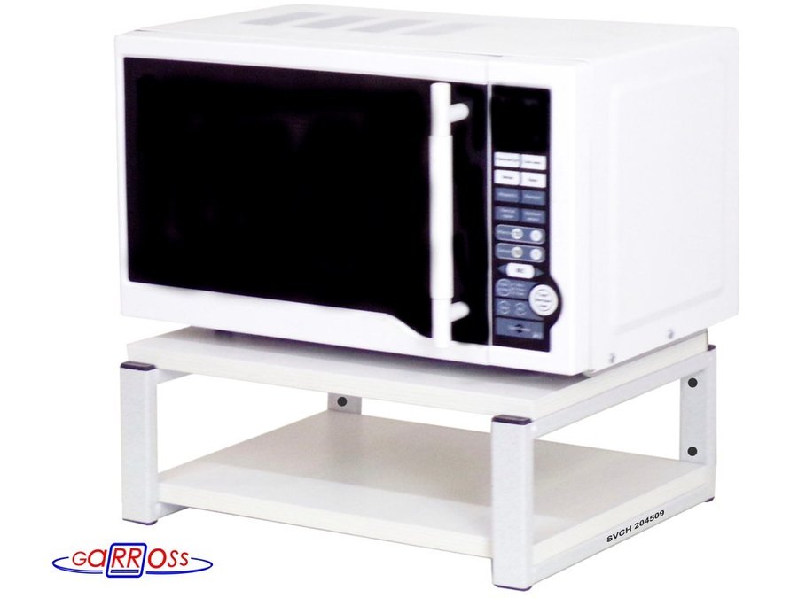 • Полка надежно крепится к стене при помощи анкеров или шурупов с дюбелями, на ней можно разместить микроволновую печь, кухонную технику, посуду, специи