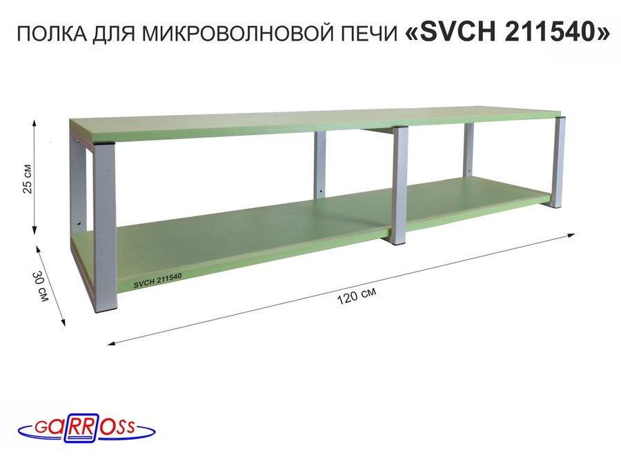 В корзину Купить в 1 клик Кронштейн для микроволновки, 27см серый, 2 полки 30х120см "SVCH 211540" под микроволн.печь,салатовый