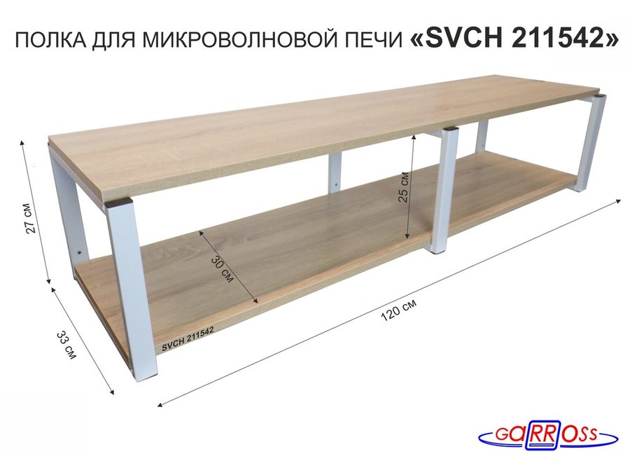Кронштейн для микроволновки, 27см серый, 2 полки 30х120см "SVCH 211542" под микровол.печь,дуб сонома