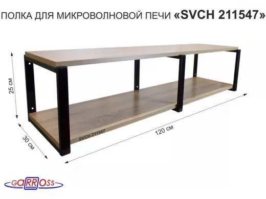 В корзину Купить в 1 клик Кронштейн для микроволновки, 27см черный, 2 полки 30х120см "SVCH 211547" под микров.печь,дуб сонома