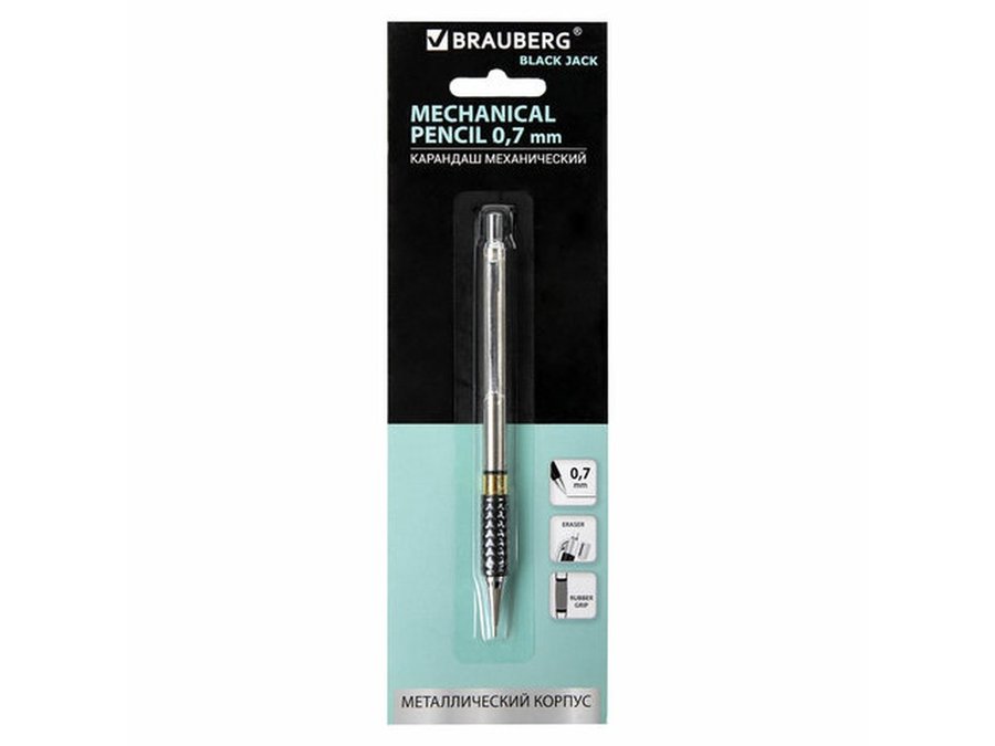 В корзину Купить в 1 клик Карандаш механический "BR-75673" "BlackJack" метал. корпус, резиновый грип, ластик, 0,7 мм