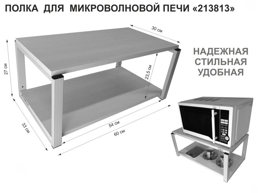 Кронштейн для микроволновки, 27см серый "SVCH 213813" полка под микроволновую печь, 60х30, белая