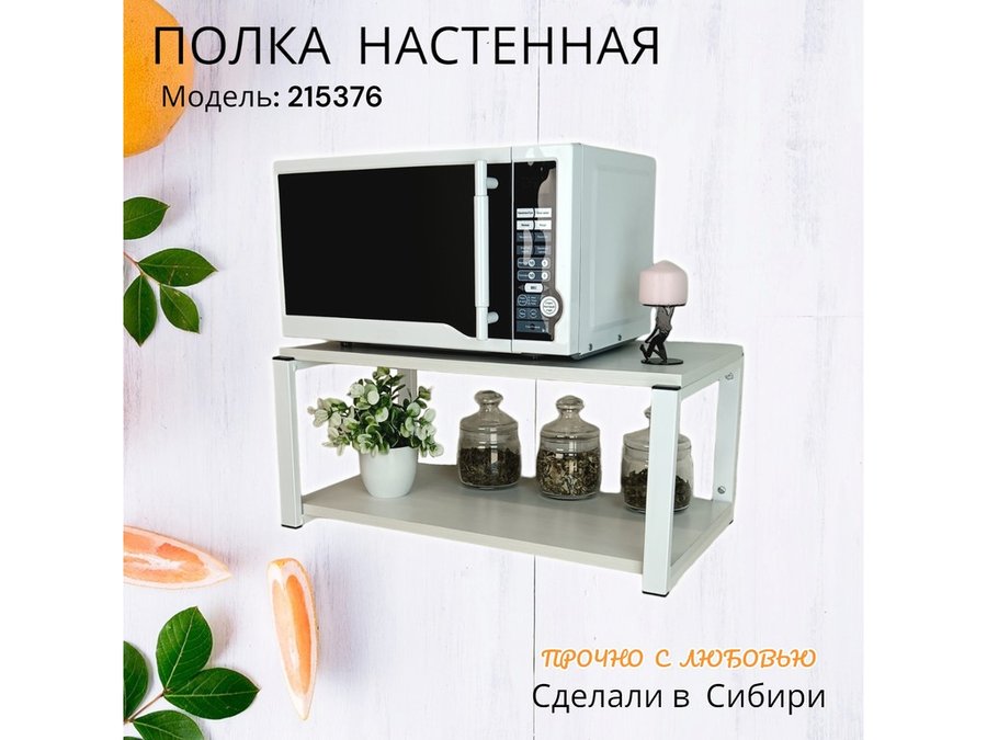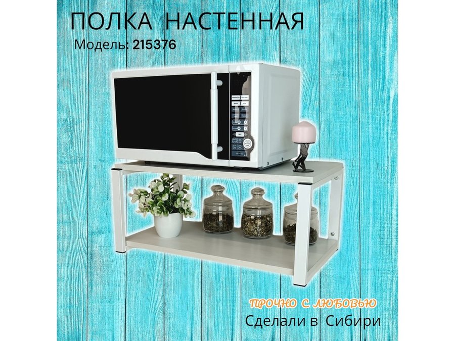• Полка надежно крепится к стене при помощи анкеров или шурупов с дюбелями, на ней можно разместить микроволновую печь, кухонную технику, посуду, специи