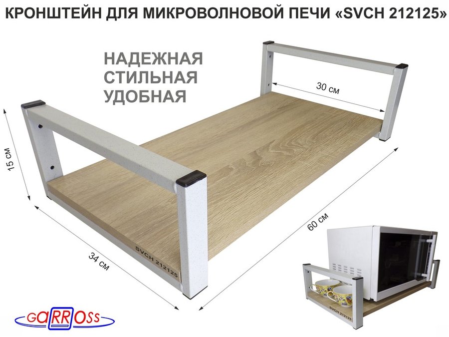 Кронштейн для микроволновой печи, серый "SVCH 212126" высота 15 см, полка 60х30 см, сосна выбеленная