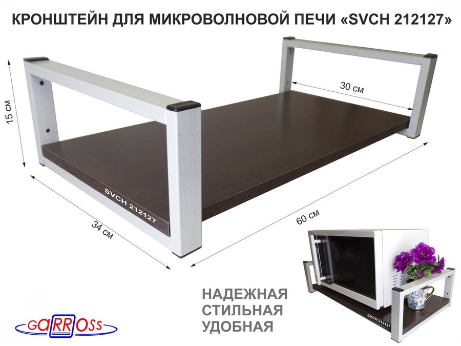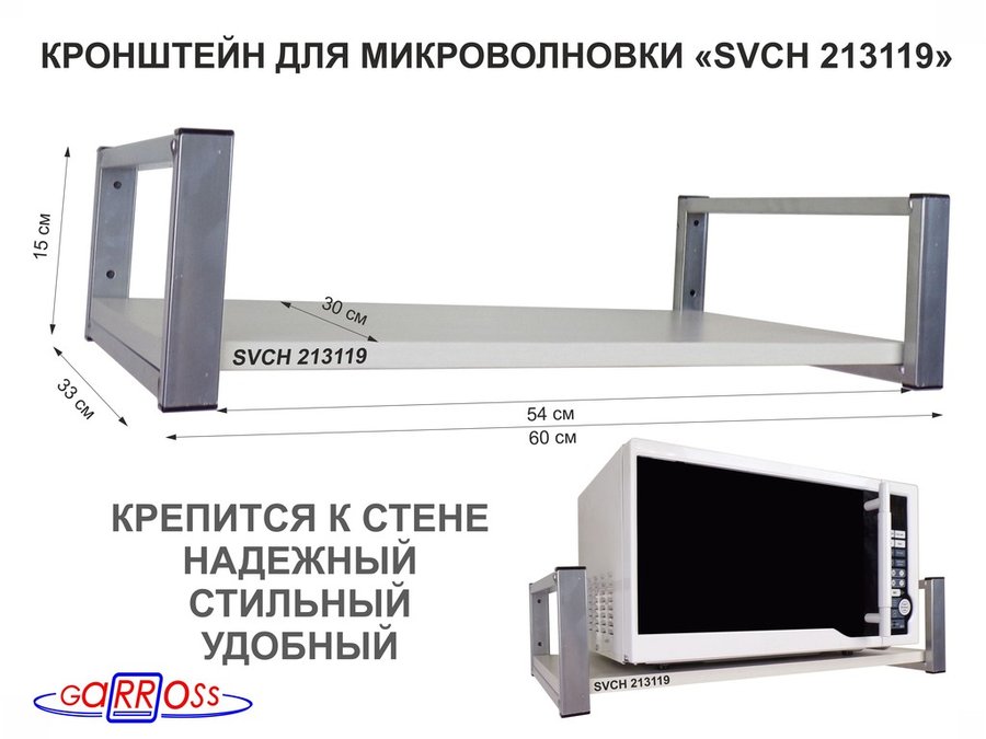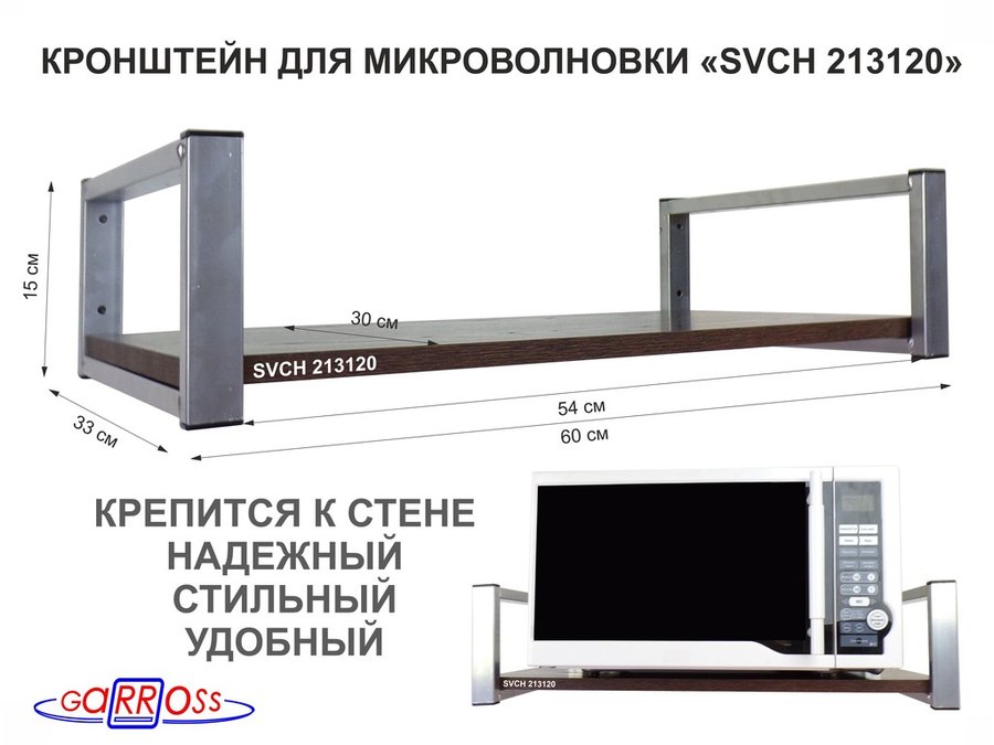 Полки для микроволновок "SVCH" кронштейны для СВЧ печей, высота 15см, 60х30см, 1 уровень