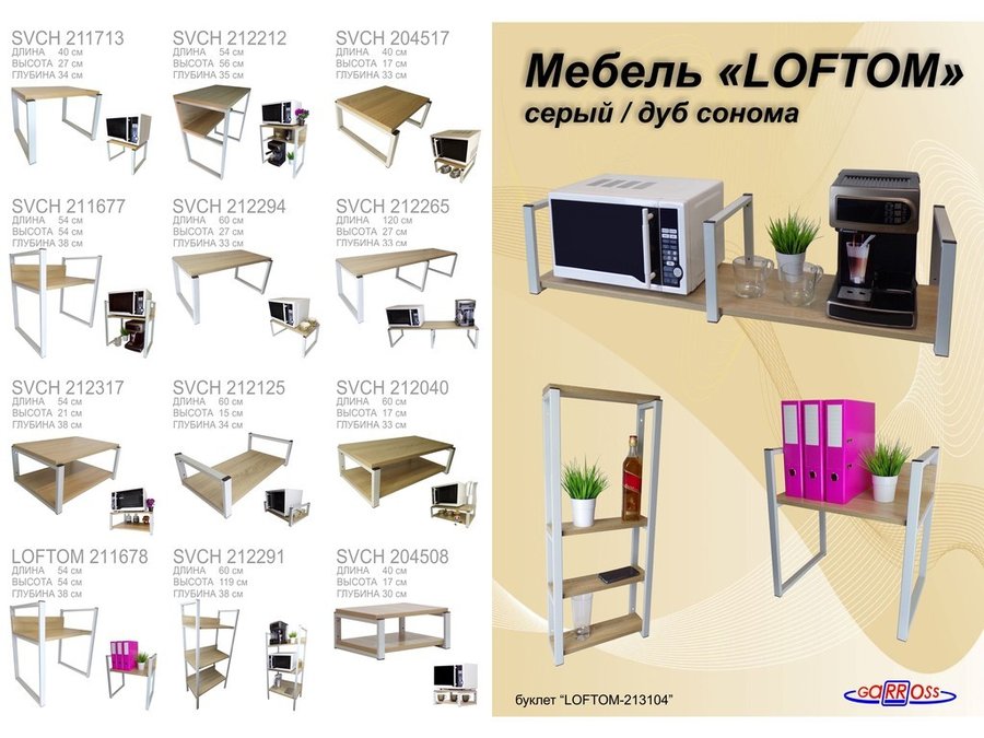 Кронштейн для микроволновой печи, серый "SVCH 212125" высота 15 см, полка 60х30 см, дуб сонома