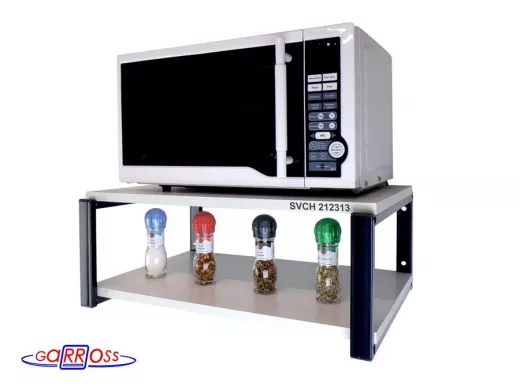 Кронштейн для микроволновки, 21см чёрный "SVCH 212313" две полки 35х54см, сосна выбеленная