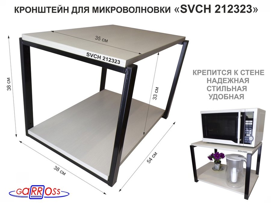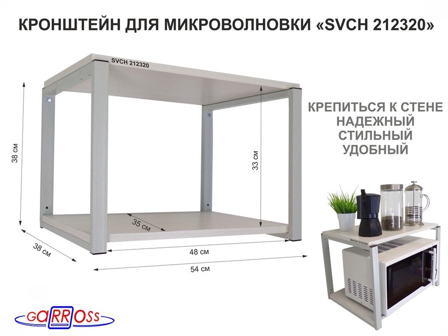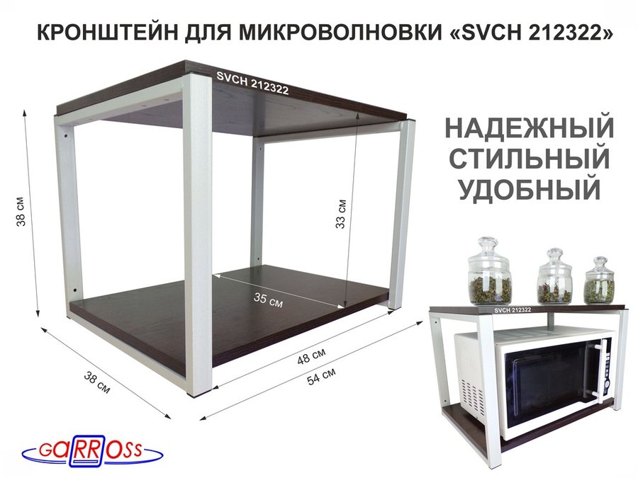 В корзину Купить в 1 клик Кронштейн для микроволновки, 38см серый "SVCH 212322" две полки 35х54см, венге