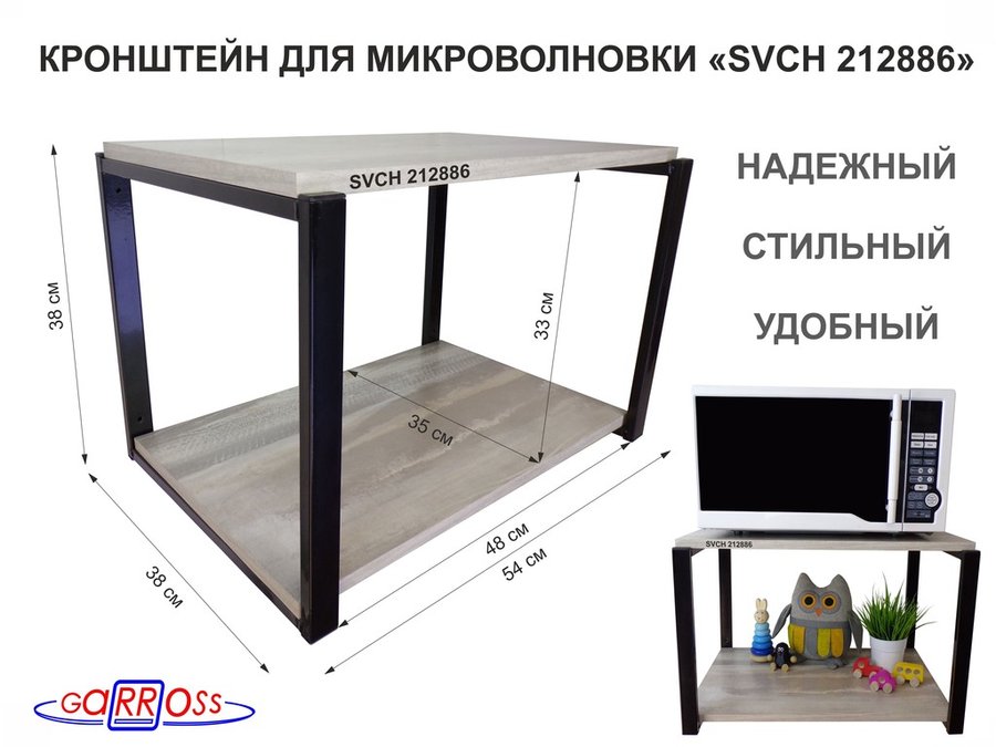 В корзину Купить в 1 клик Кронштейн для микроволновки, 38см серый "SVCH 212885" две полки 35х54см, лофт