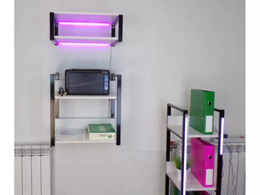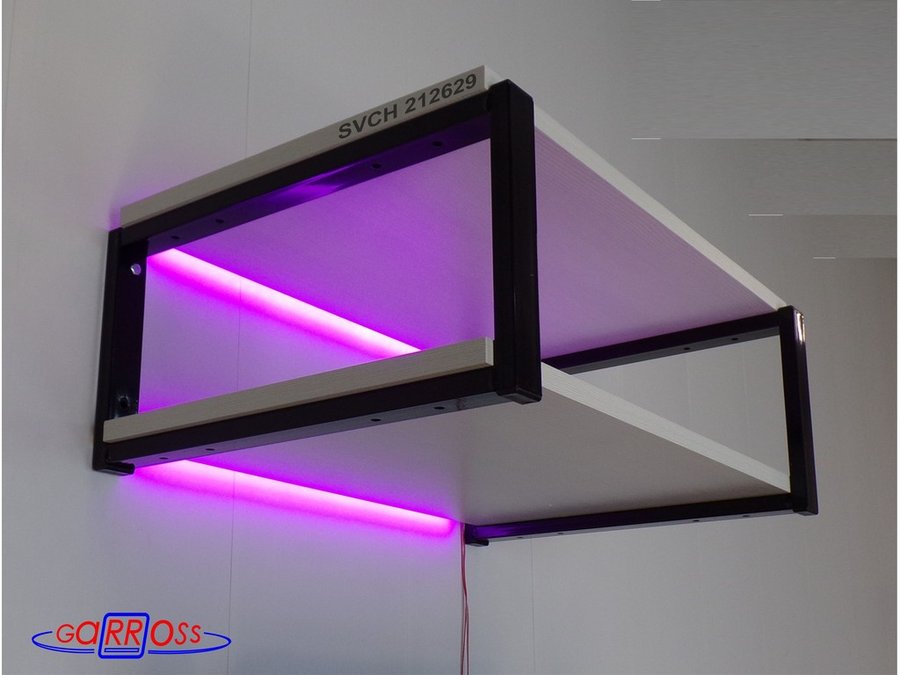 • Подсветка розового цвета сдвоенная для двух полок, её можно устанавливать в любое место, направляя