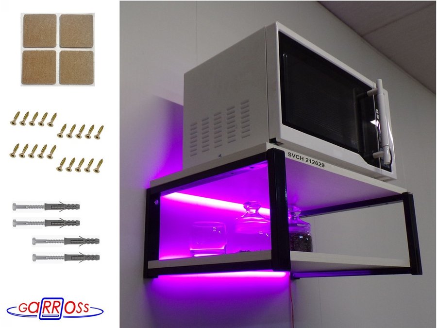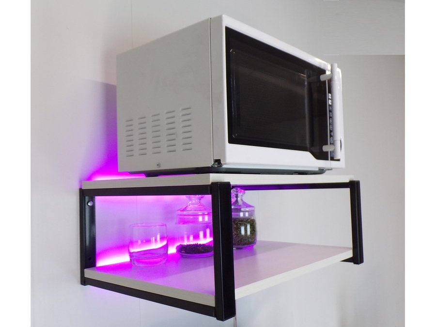 В корзину Купить в 1 клик Кронштейн для микроволновки с розовой подсветкой, 21см черный "SVCH 212629" две полки 35х54см, сосна
