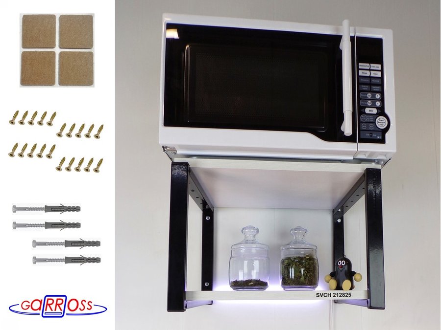 В корзину Купить в 1 клик Полка с подсветкой белого цвета для микроволновки, 27см чёрный "SVCH 212825" полки 30х40 см, сосна