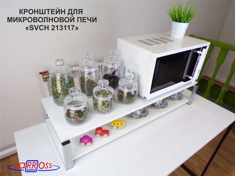 Кронштейн для микроволновки, 17см серебристый "SVCH 213117" под микроволновку,две полки 90х30, сосна