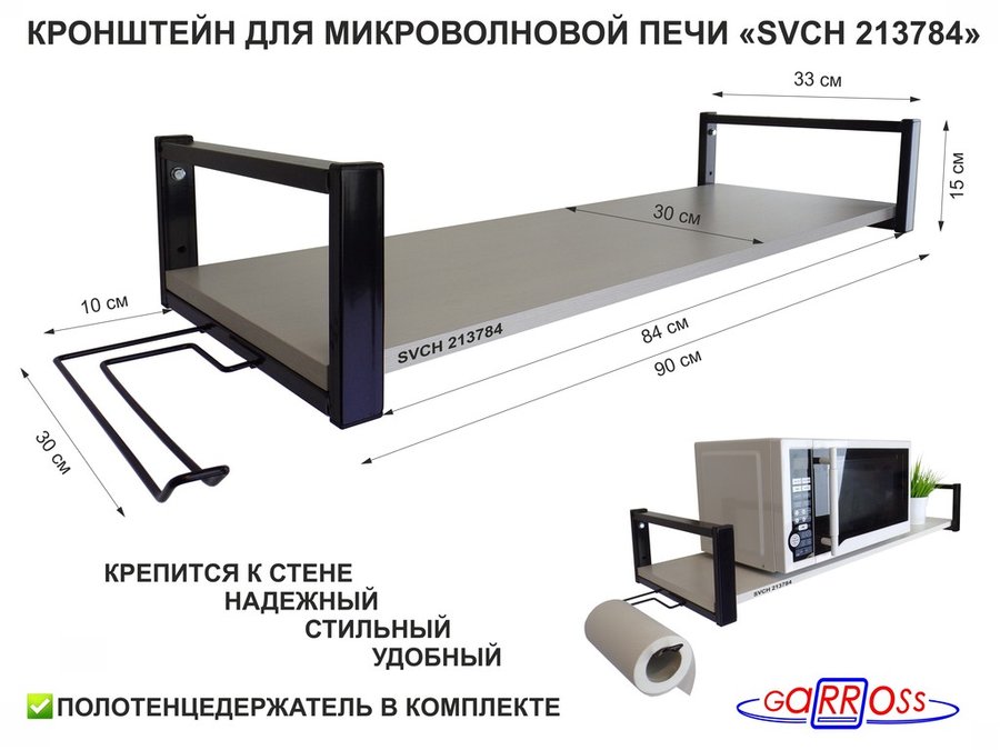 В корзину Купить в 1 клик Кронштейн для микроволновой печи, 15см чёрный "SVCH 213364" полка 90х30, дуб, держатель полотенц.