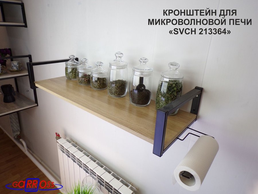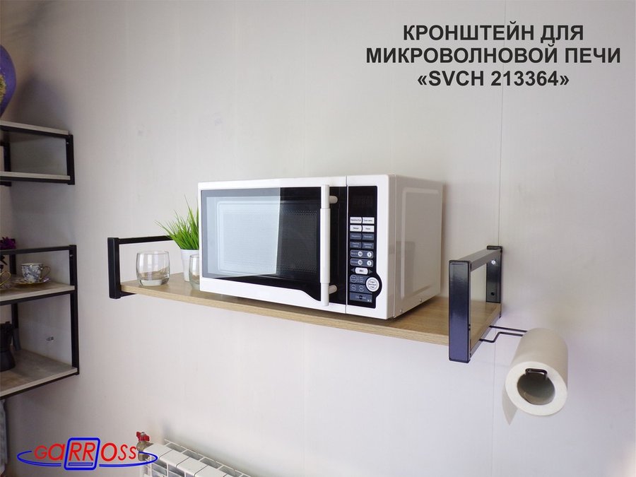 В корзину Купить в 1 клик Кронштейн для микроволновой печи, 15см чёрный "SVCH 213364" полка 90х30, дуб, держатель полотенц.