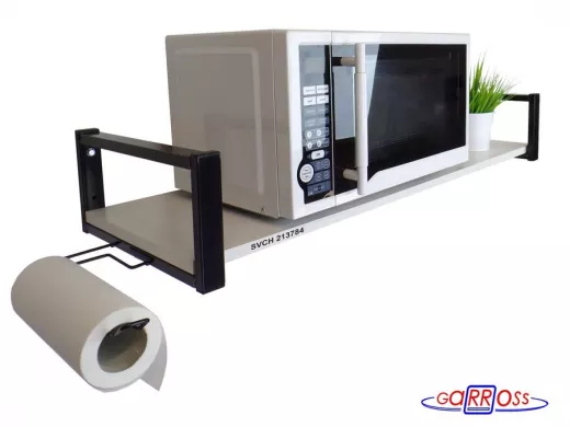 Кронштейн для микроволновой печи, 15см серый "SVCH 213784" полка 90х30,сосна с держателем полотенец