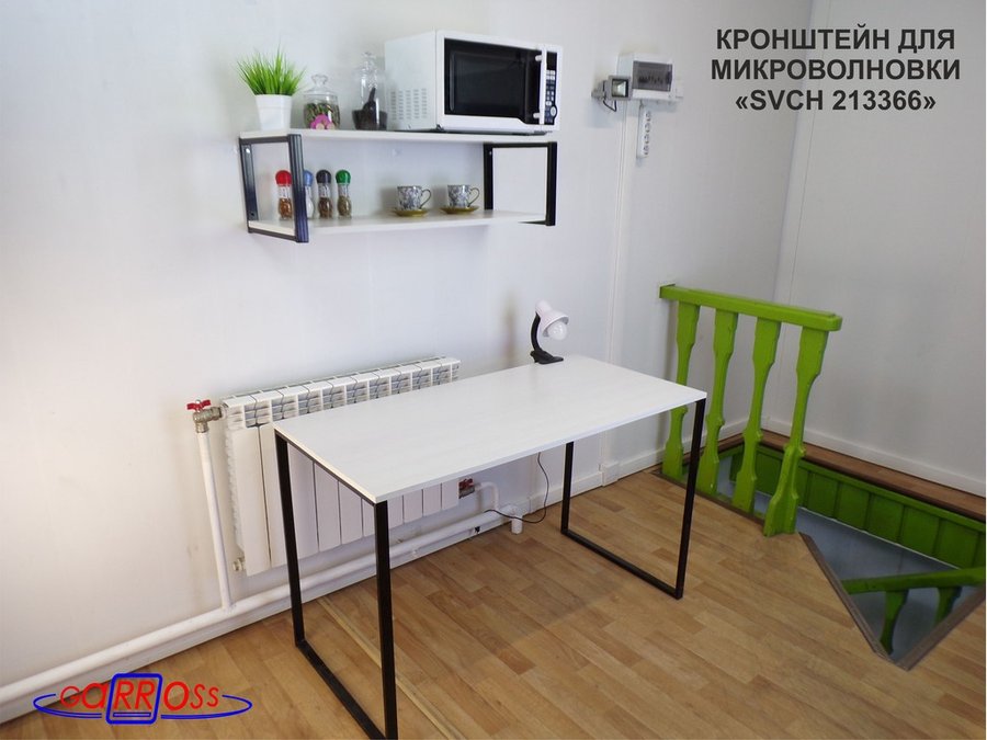 Кронштейн для микроволновки, 27см черный "SVCH 213366" полки для кухни, 90х30, сосна выбеленная