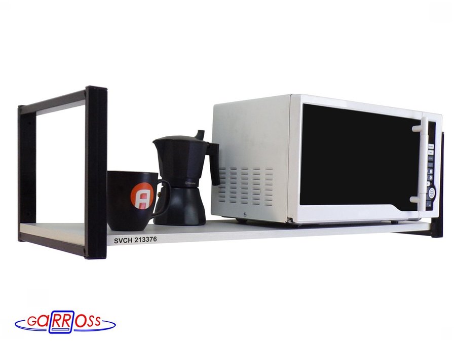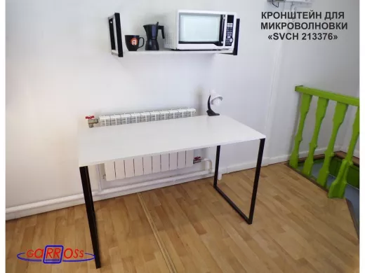 Кронштейн для микроволновки, 25см черный, 1 полка 90х30см "SVCH 213376" для кухни, сосна