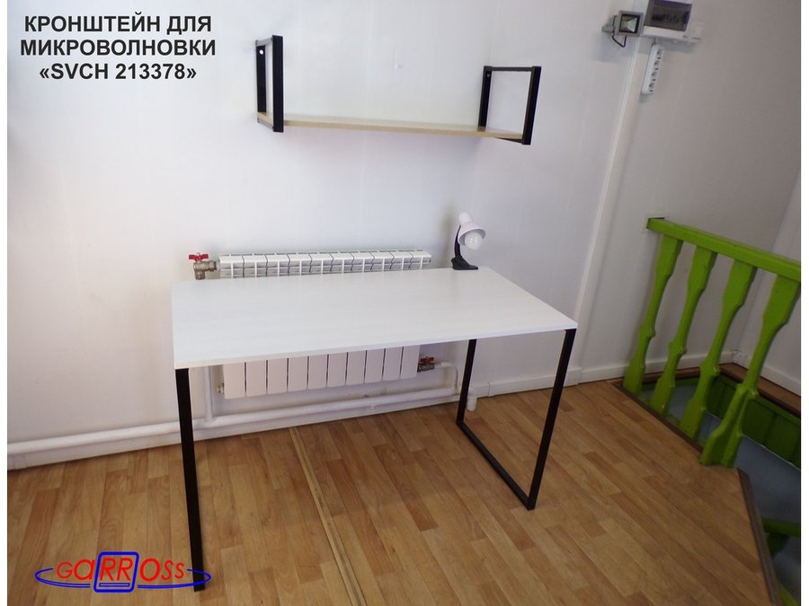 • Полка надежно крепится к стене при помощи анкеров или шурупов с дюбелями, на ней можно разместить микроволновую печь, кухонную технику, посуду, специи