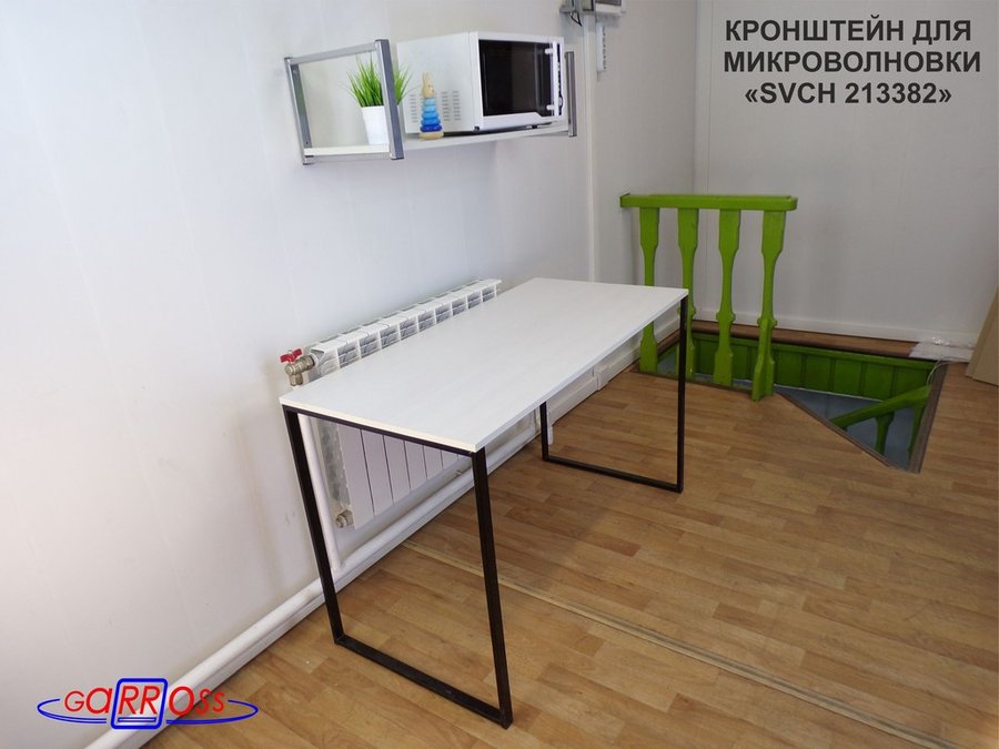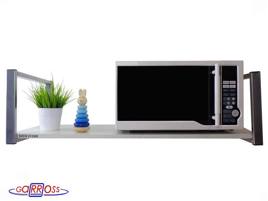 Кронштейн для микроволновки, 25см серебр, 1 полка 90х30см "SVCH 213382" для кухни, сосна