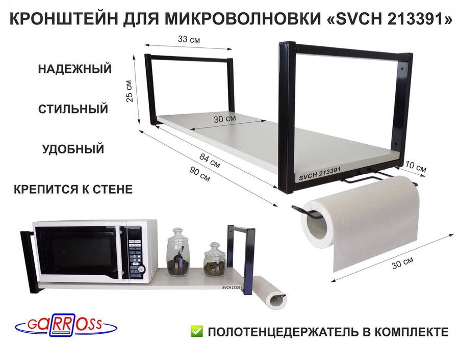 Полки для микроволновок "SVCH" кронштейны для СВЧ печей, высота 25см, 90х30см, 1 уровень, держатель