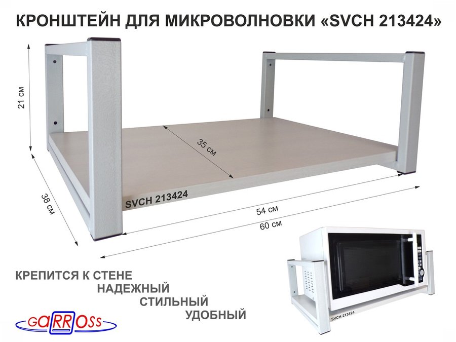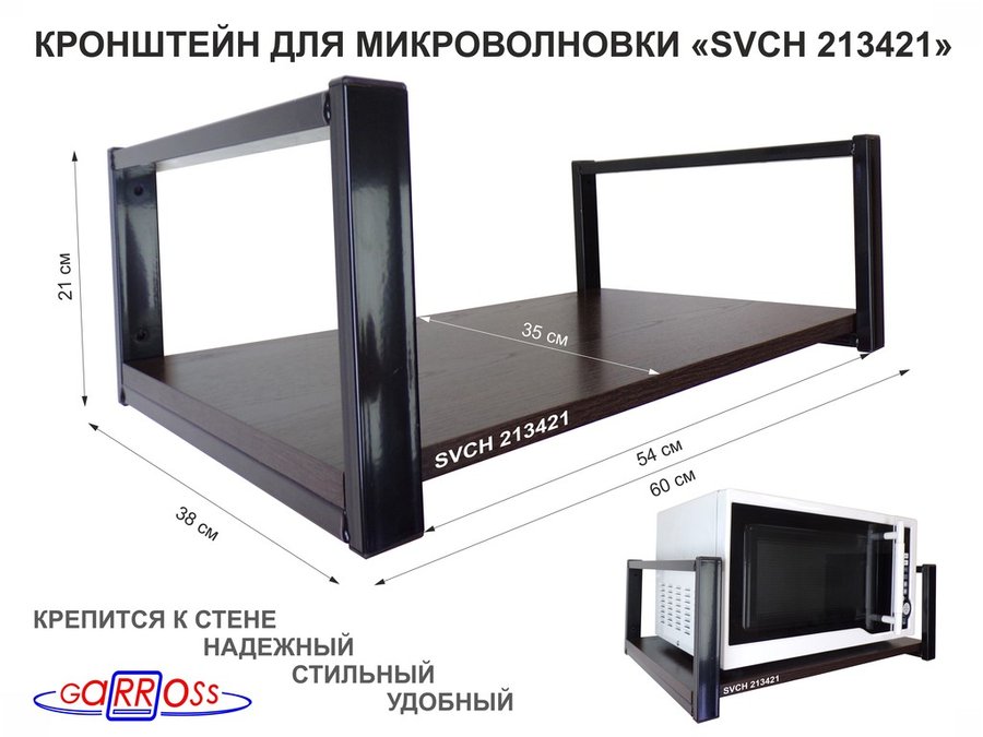 Полки для микроволновок "SVCH" кронштейны для СВЧ печей, высота 21см, 60х35см, 1 уровень