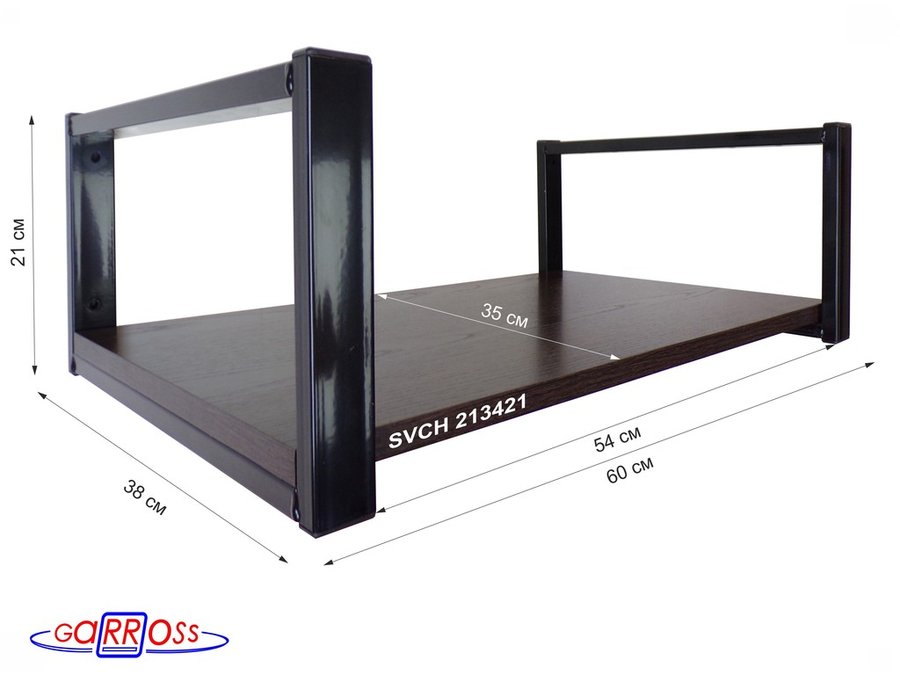 Кронштейн для микроволновки, 21см чёрный "SVCH 213421" одна полка 35х60см, венге