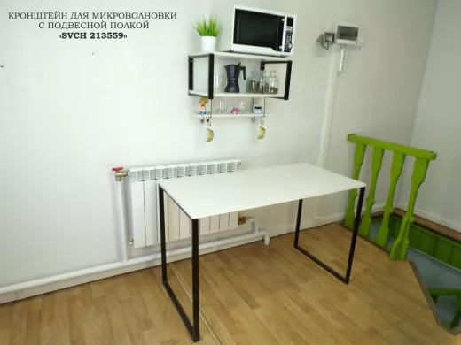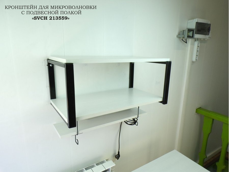 Кронштейн для микроволновки с подвесной полкой, высота 27см, черный "SVCH 213559" 60х30см, сосна