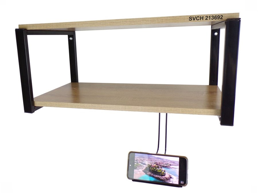 Полка для микроволновой печи с держателем телефона, 27см черный "SVCH 213692", 60х30, дуб сонома