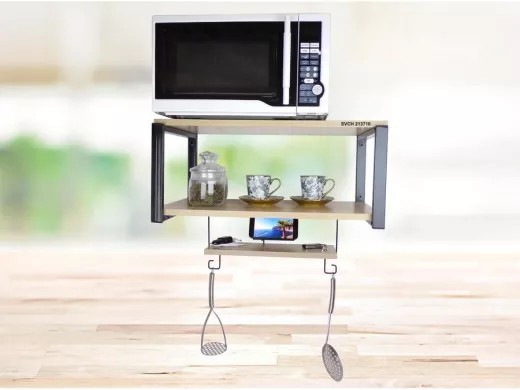 Полка для микроволновой печи с держателем телефона, 27см черный "SVCH 213710", 60х30, дуб сонома
