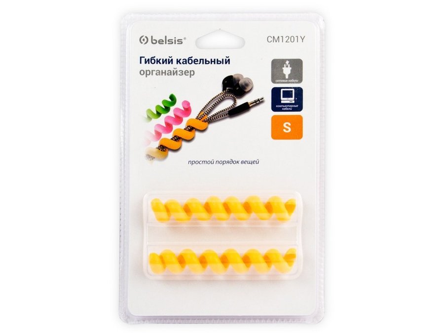 В корзину Купить в 1 клик Органайзер кабельный гибкий, тип "пружина", 10 см, желтый, 2 шт. в блистере EAN