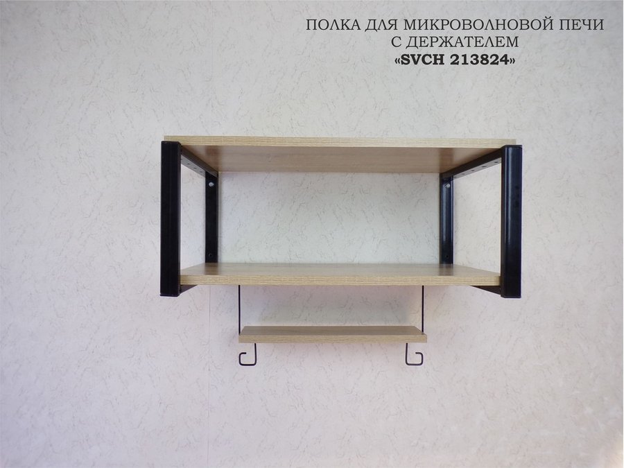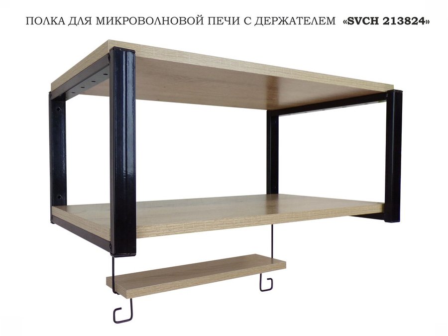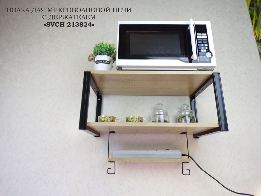 В корзину Купить в 1 клик Полка для микроволновки, 27см черный "ПолкаКрепка-213824" 60х30, дуб сонома, с держателем фильтра