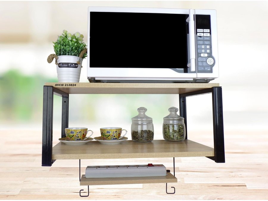• На верхней полке можно разместить микроволновую печь или другую кухонную технику, на средней отлично "встанет" посуда, баночки под сыпучее и многое другое, а нижняя полка отлично подойдет для специй, таймера или маленьких сувениров