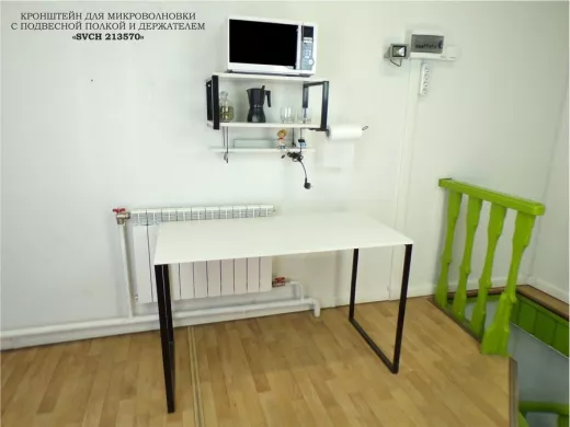 Полка для микроволновки с подвесной полкой, 27см, черный "SVCH 213570" 60х30см, сосна, держатель