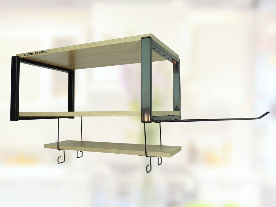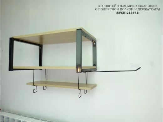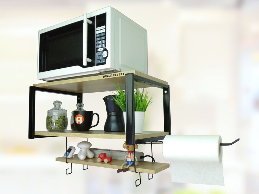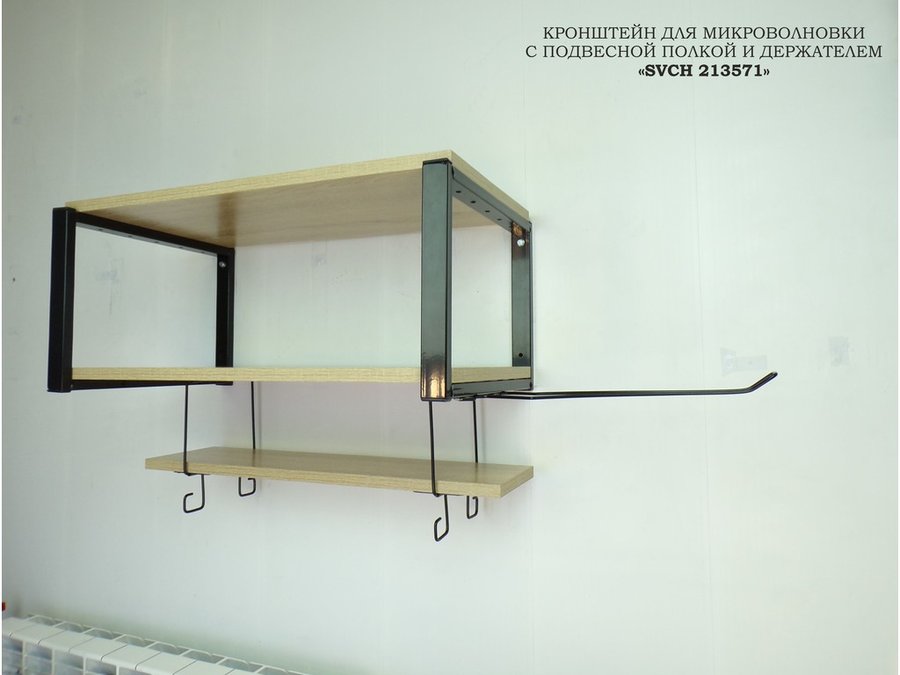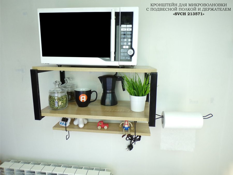 В корзину Купить в 1 клик Полка для микроволновки с подвесной полкой и держателем полотенец,черная "SVCH 213571" 60х30см, дуб
