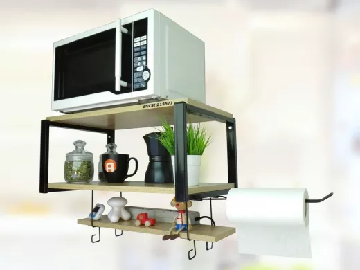 • На верхней полке можно разместить микроволновую печь или другую кухонную технику, на средней отлично "встанет" посуда, баночки под сыпучее и многое другое, а нижняя полка отлично подойдет для специй, таймера или маленьких сувениров