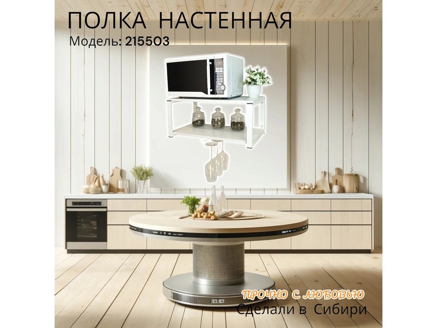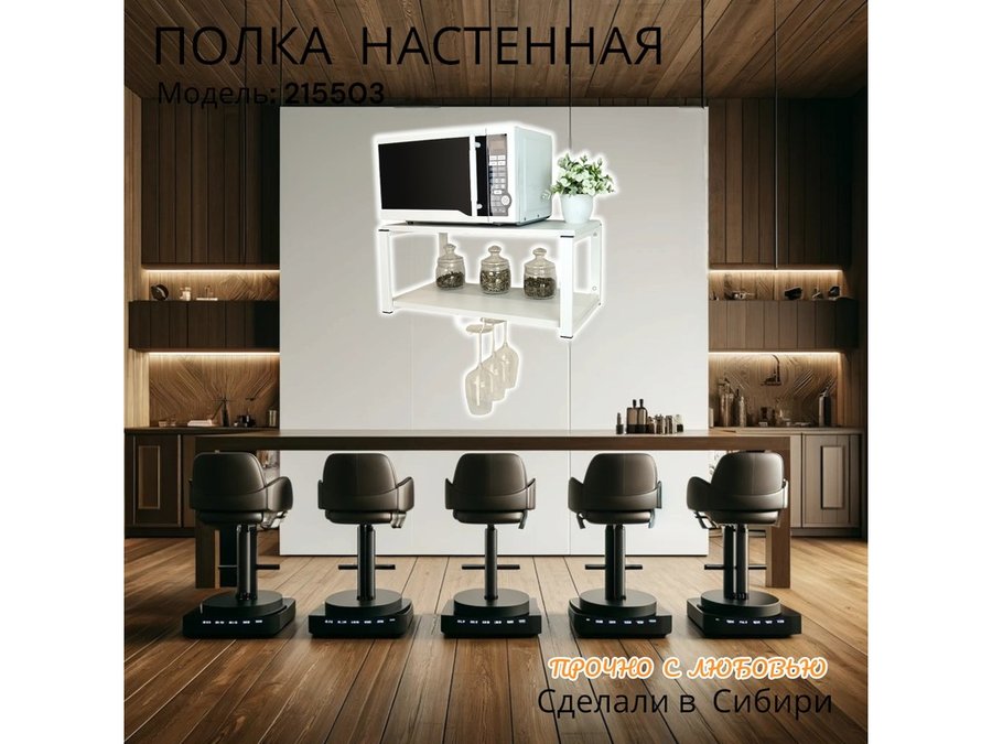 Полка c одним бокалодержателем для микроволновки "SVCH 215503" 60х30см, белая, белый