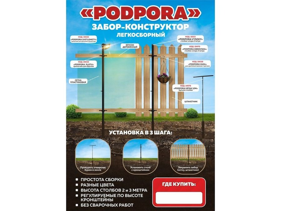 В корзину Купить в 1 клик "PODPORA" (без сайтов) рекламная листовка,забор-конструктор PODPORA, формат А5, 115гр, мелованная
