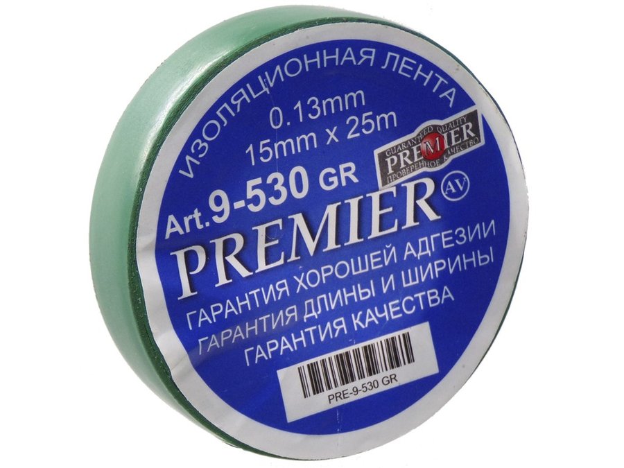 В корзину Купить в 1 клик Изолента 15мм х 25метров зеленая PREMIER 0,13мм