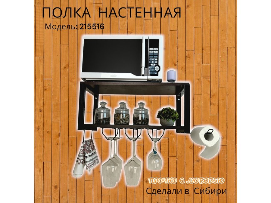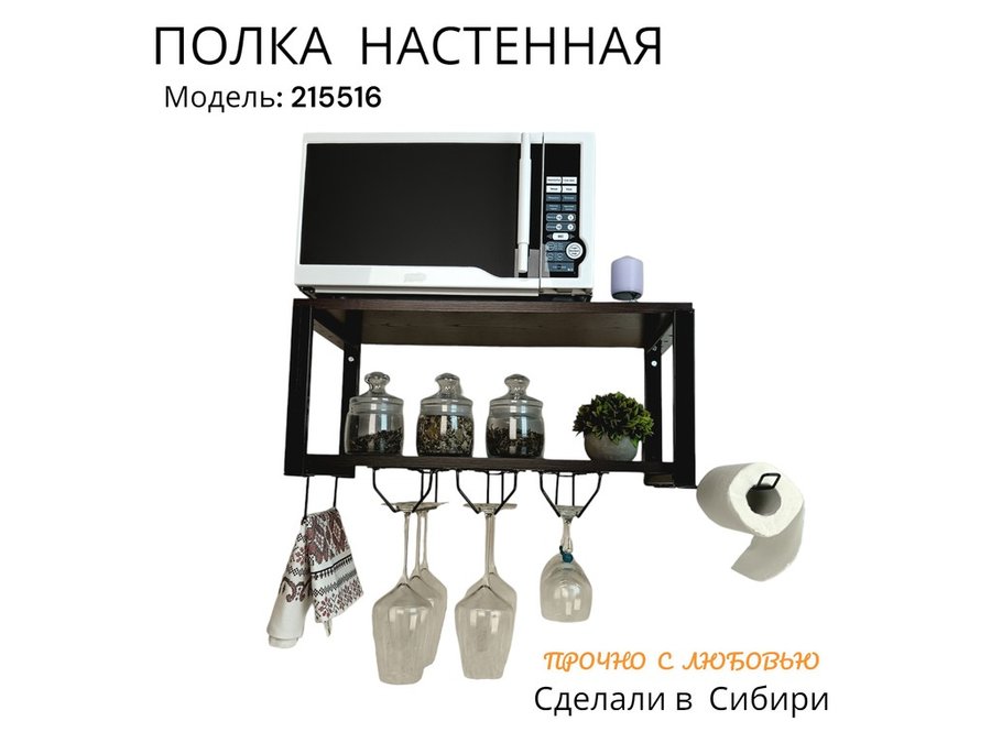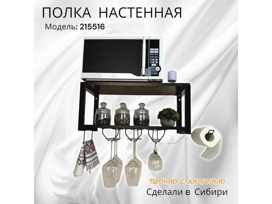 Полка c тремя бокалодержателем и полотенцед. для микроволновки "SVCH 215516" 60х30см, черная, венге