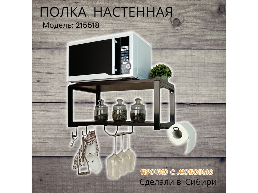 В корзину Купить в 1 клик Полка для микроволновки c бокалодержателем, полотенцед, крючками "SVCH 215518" 60х30см, черная,венге