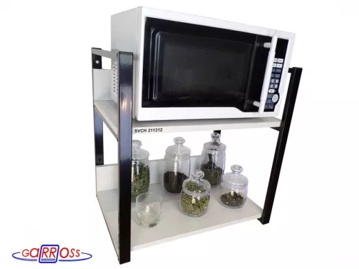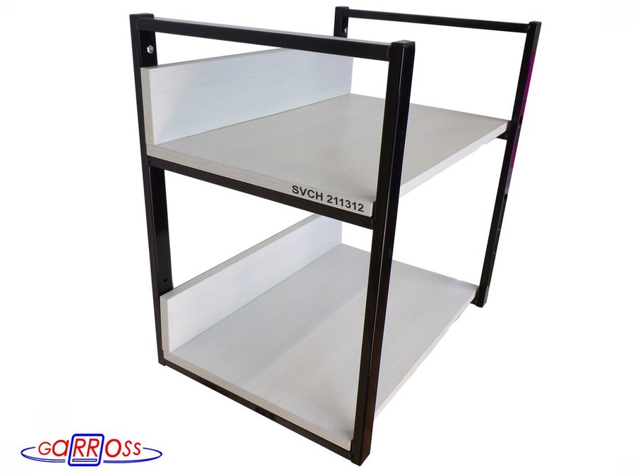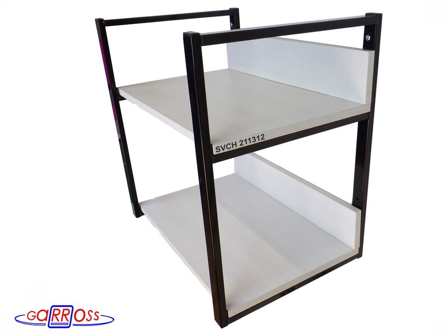 Кронштейн для микроволновки, 54см чёрный "SVCH 211312" две полки 35х54см с бортиком,сосна выбеленная