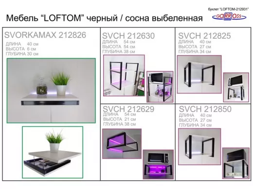 В корзину Купить в 1 клик Кронштейн для микроволновки, 54см чёрный "SVCH 211312" две полки 35х54см с бортиком,сосна выбеленная
